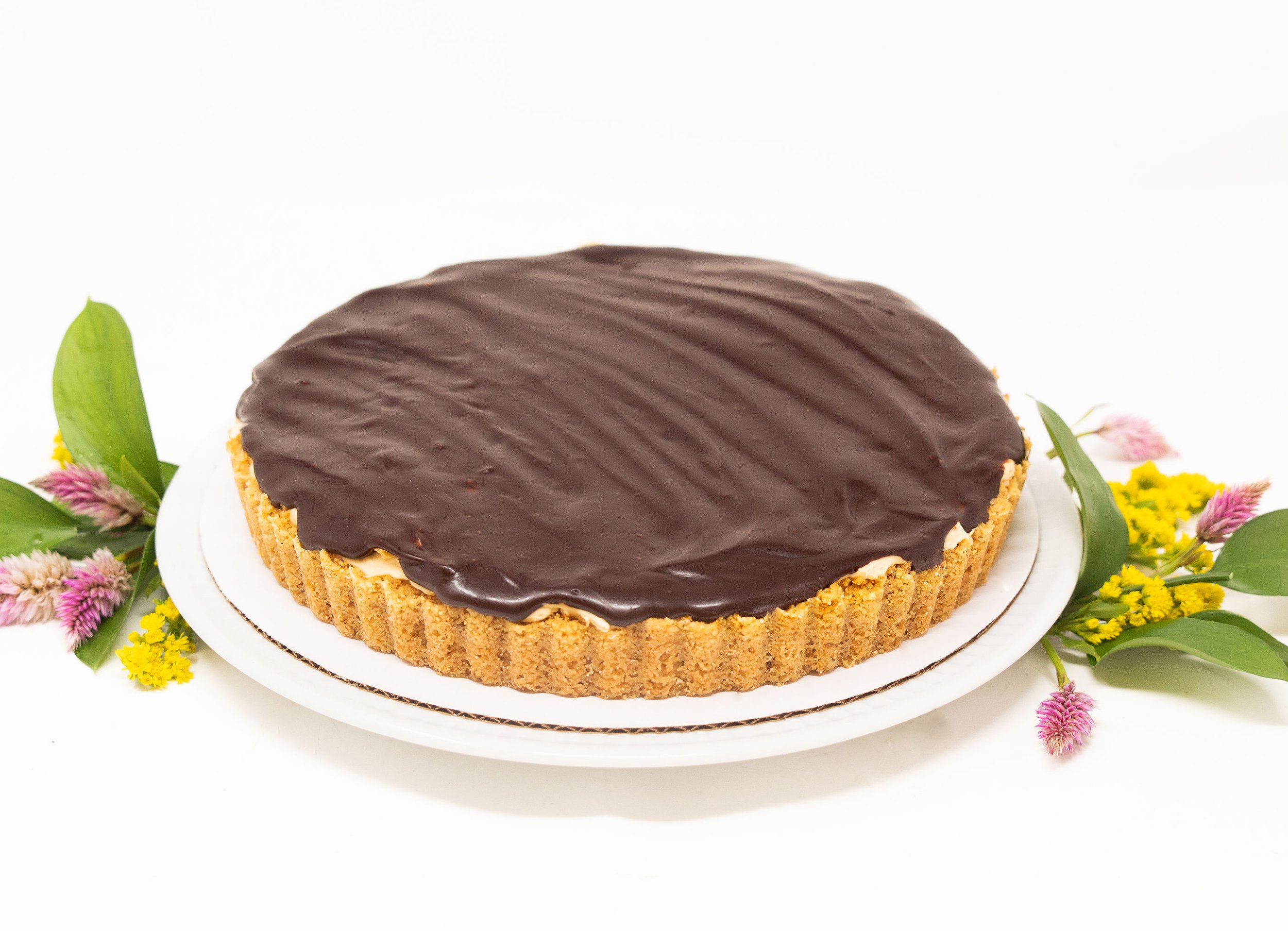traditional pecan pie filling layered over cream cheese in our house made pie crust