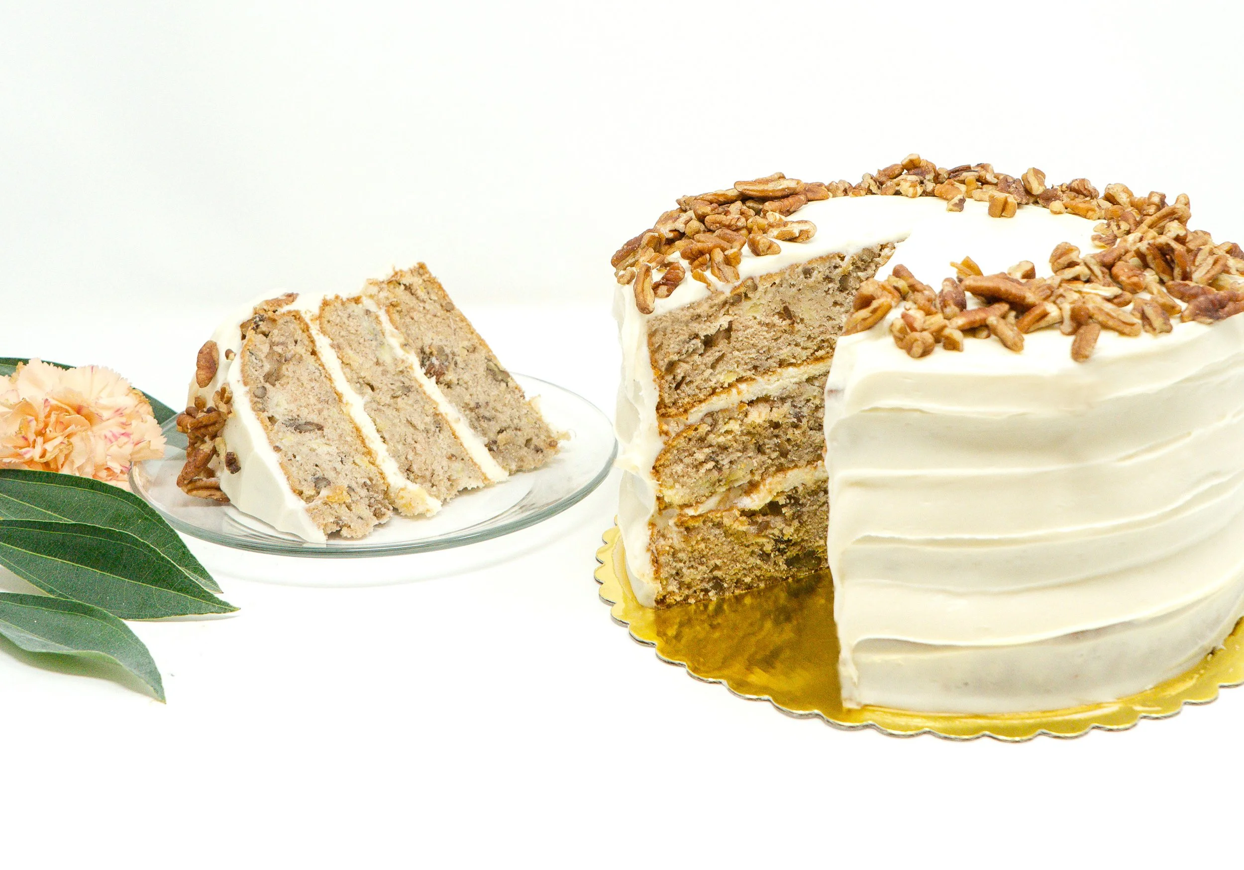 3-layer almond infused butter cake with almond buttercream frosting + floral icing design
